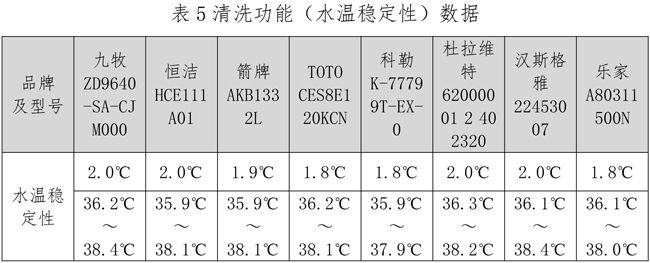 五、清洗功能(水温稳定性)