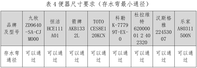四、尺寸要求(存水弯最小通径)