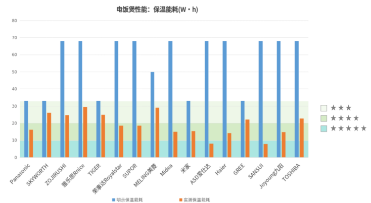 其中“SANSUI”牌DJ-50C003型智能电饭煲和“ASD爱仕达”牌AR-F50E918型微电脑电饭煲的测试结果在10W·h以内。
