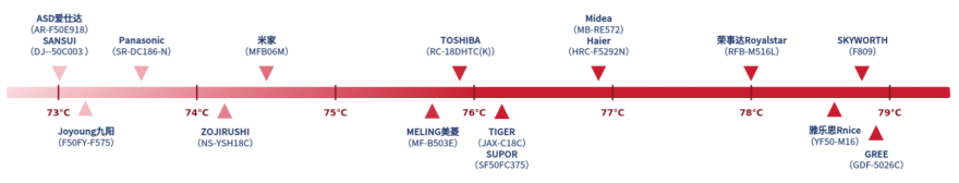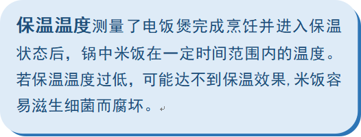 国家标准GB/T 40978-2021《电饭锅》要求“对于带有保温功能的器具,其保温温度应不低于60℃”,本次测试结果16台电饭煲样品的保温温度均满足标准要求。