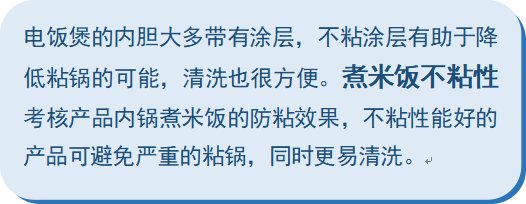 国家标准中煮米饭不粘性II级要求“轻摇烹饪器具,仍有米饭粘在涂层上,米饭重量≤50g”,本次测试结果16台电饭煲样品的煮米饭不粘性结果均小于50g,达到标准II级要求。